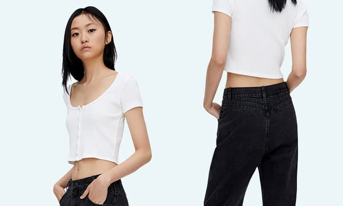 Siyah, yuvarlak kesimli, kesik tarzda elbise.